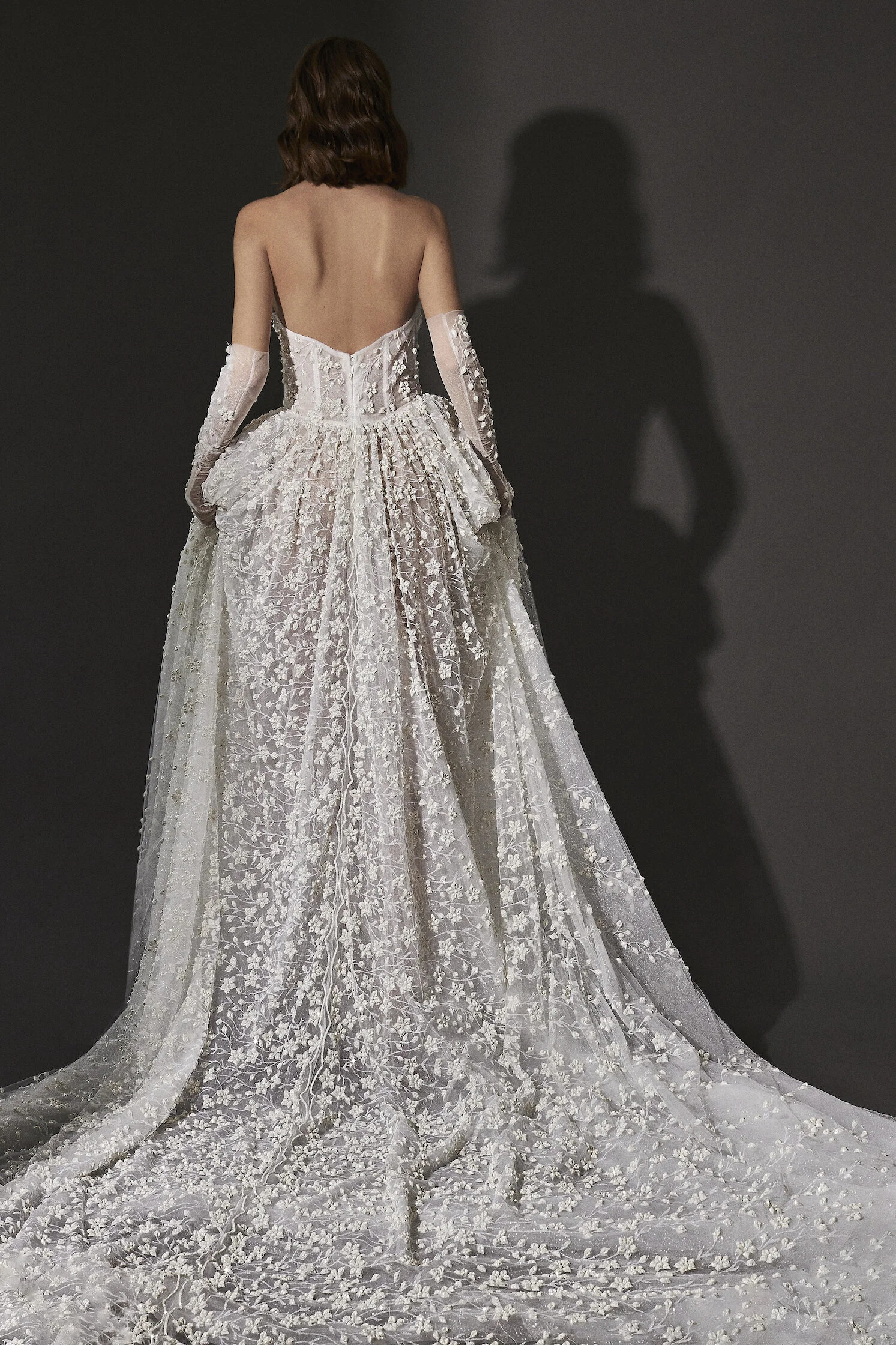 Eden A-line beaded strapless dress with sweetheart neckline, embroidered tulle with sparkle, long train, and princess gloves. View fullsize View fullsize View fullsize View fullsize